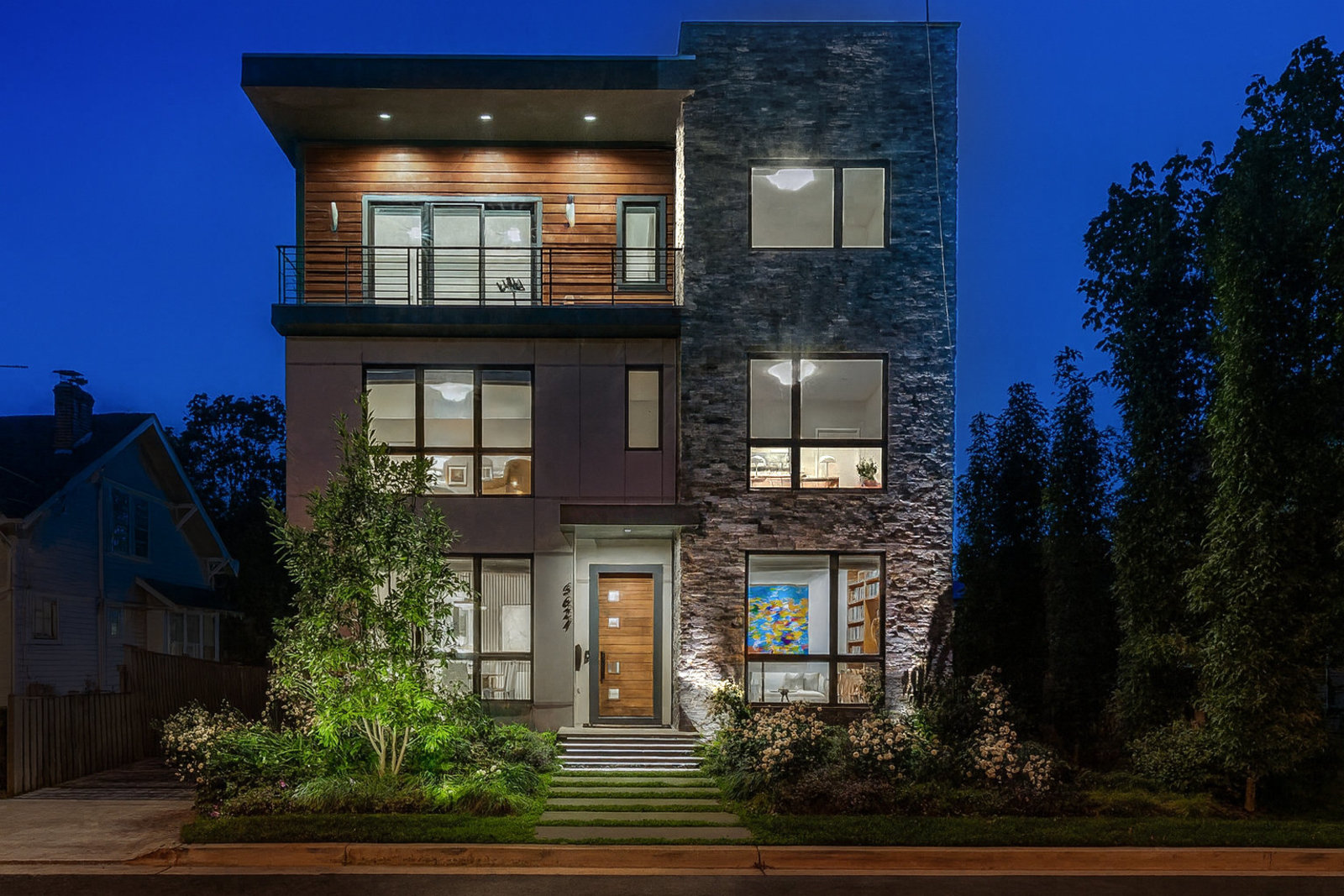 Designed for modern living, the home features a gourmet kitchen equipped with top-of-the-line appliances, elegant primary bedroom with luxurious ensuite bathroom, a spacious third-floor loft with a wet bar, and multiple outdoor spaces, including a rear sun deck and two balconies. An elevator services all levels, ensuring convenience and accessibility. The landscaped backyard backs directly onto Carolina Park, offering unparalleled privacy and a serene natural backdrop. The front offers a modern layered garden designed by Moody Graham and features perennial native plants and local bluestone walk and floating stairs Additional amenities include custom shades throughout, a solar array that all but eliminates electricity bills, UV coated windows on all rear windows and entire first floor, a two-car detached garage, driveway, and parking pad. All providing both functionality and style.