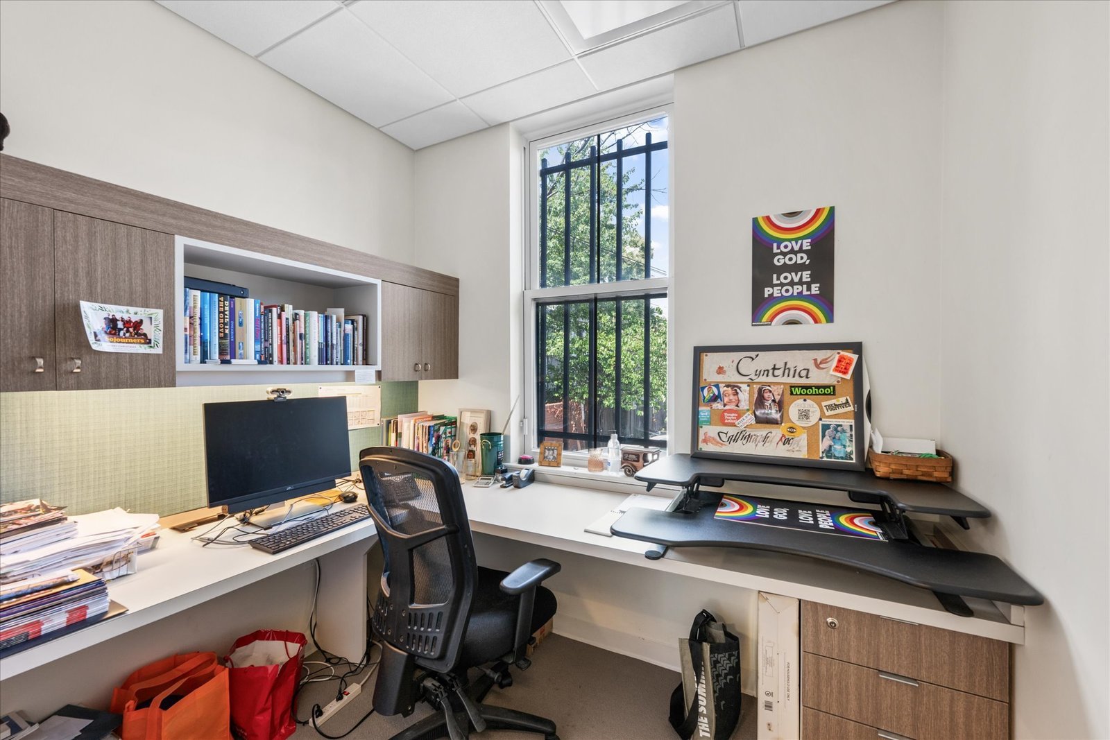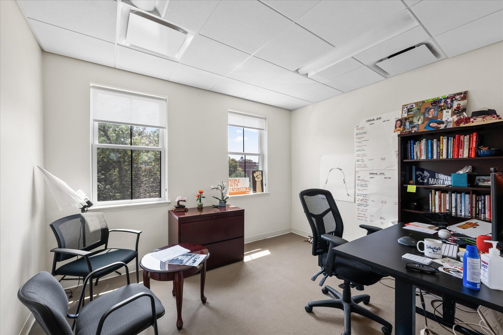 The space also includes a small, private outdoor area, perfect for breaks, informal meetings, or social gatherings, bringing an inviting touch of greenery overlooking the park and the US Capitol building. Additionally, the property offers six dedicated parking spaces, a rare and valuable amenity in this vibrant, urban setting.