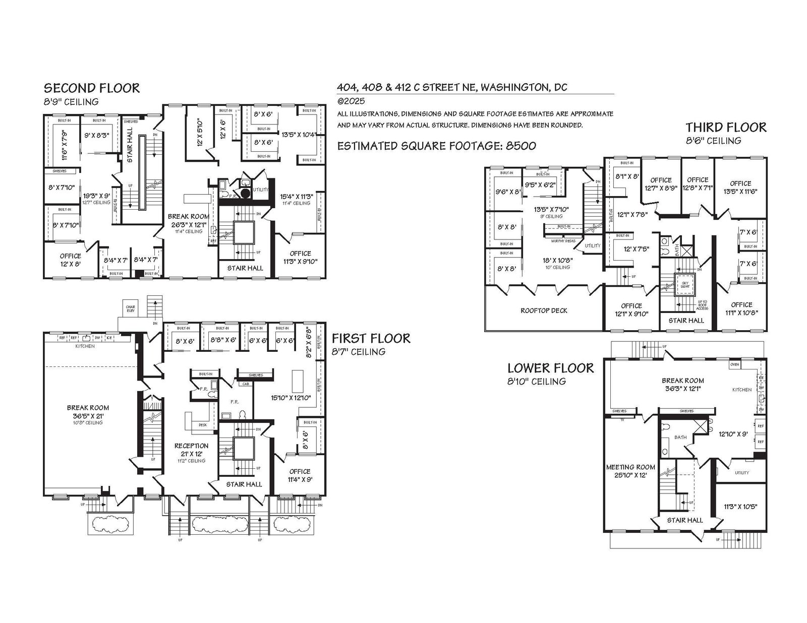 Discover an exceptional opportunity to occupy a premier commercial office space spanning 8,500 net usable square feet across three contiguous historic townhouses at 404, 408, and 412 C Street NE, perfectly positioned on Stanton Park in the heart of Washington, D.C. This versatile office environment offers a flexible layout that can accommodate a wide range of professional needs, making it ideal for corporate headquarters, creative agencies, or collaborative teams seeking both functionality and prestige.
