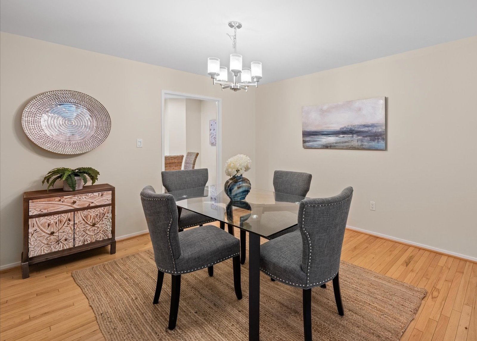 Welcome to 10847 Whiterim Drive, an exceptional townhome in the highly sought-after Woodrock community of Potomac, Maryland. Offering three bedrooms and three-and-a-half bathrooms, this residence showcases a desirable floor plan designed for both comfort and style. From the freshly painted front patio to the brand-new entry door, the home sets a warm and inviting tone from the moment you arrive. Enter and ascend to the open living area, where natural light pours through a dramatic oversized window, highlighting the gleaming hardwood flooring that spans the main level. Step up to the dining area that seamlessly connects to the kitchen—an ideal layout for entertaining. The kitchen is equipped with stainless steel appliances, granite countertops, a custom tile backsplash, and a cozy eat-in nook. From here, step out to the beautifully updated wood deck, enhanced with added posts for exterior lighting—perfectly designed for effortless outdoor gatherings and evening relaxation. A powder room and hall closet round out this main level.