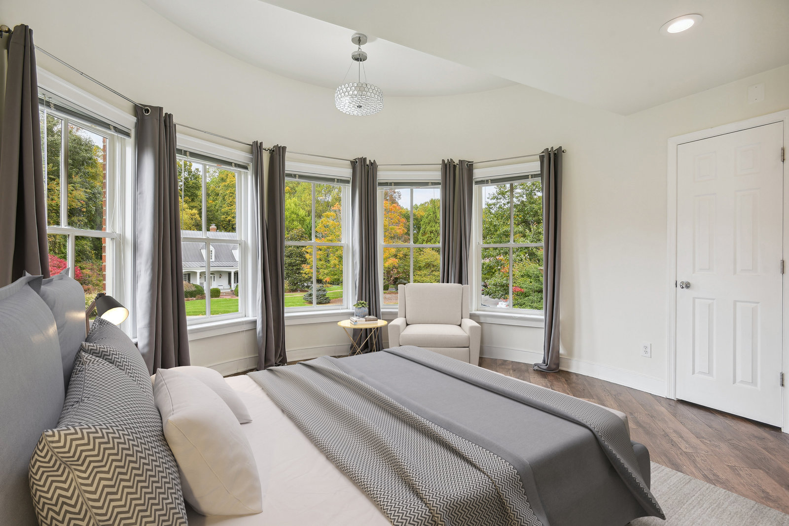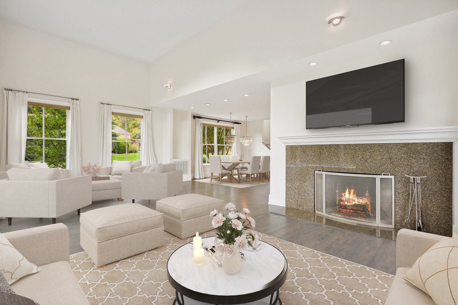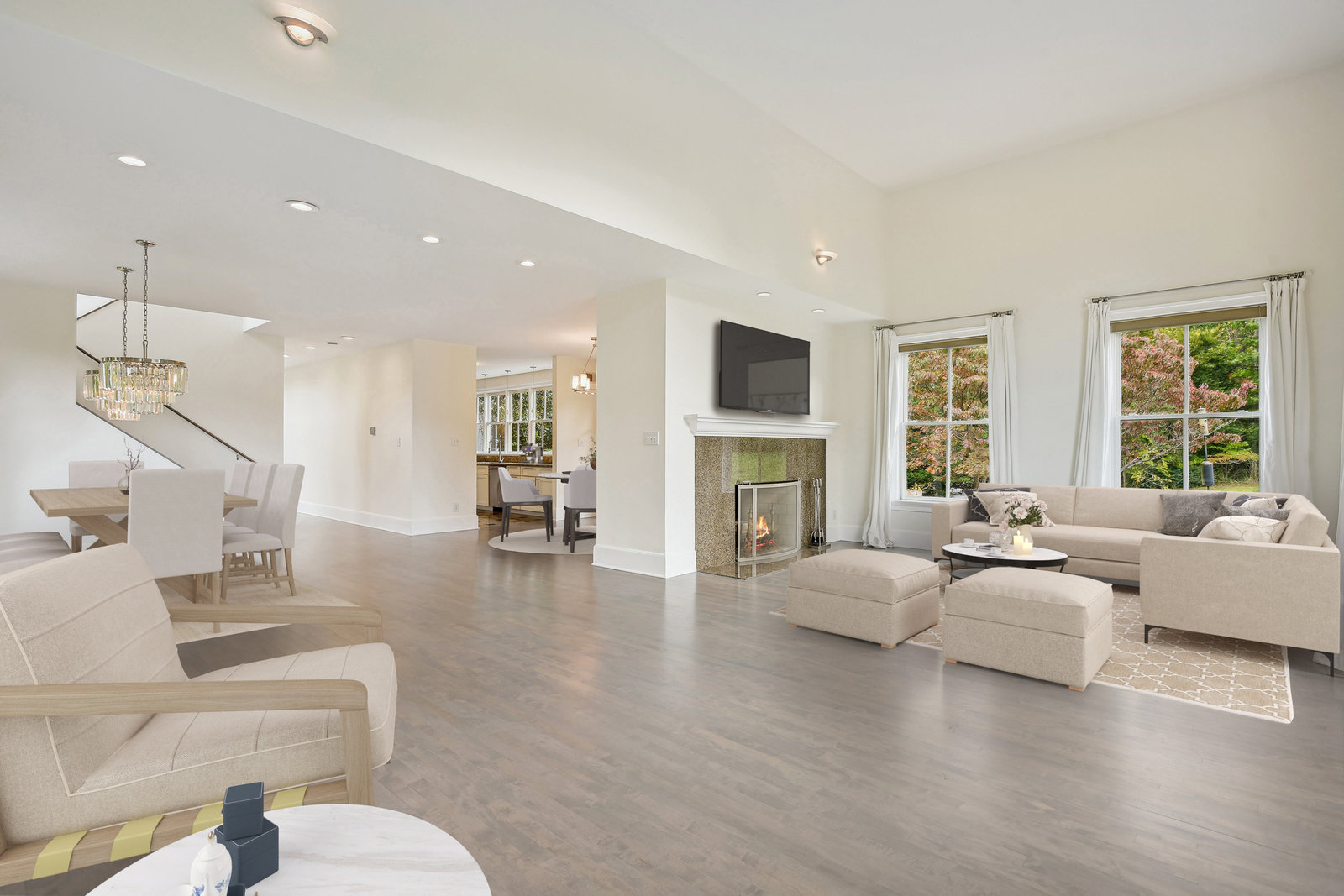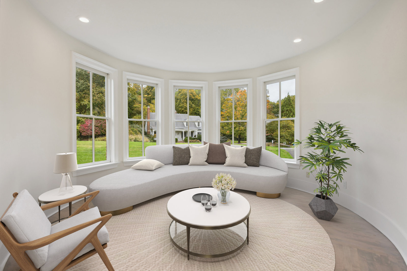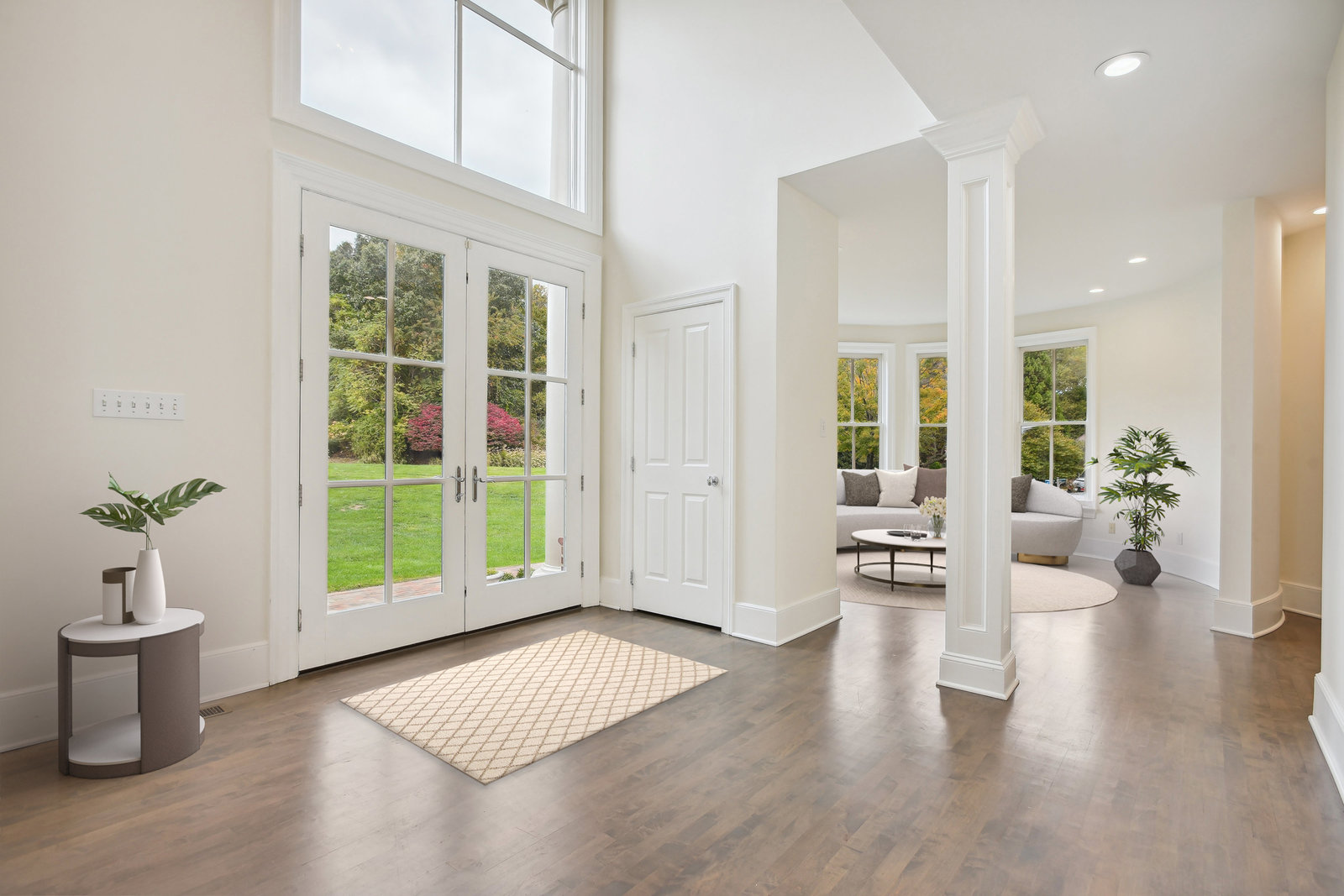 Privately set on a quiet cul-de-sac just minutes from the Great Falls Village Center, this distinguished residence blends timeless elegance with modern comfort. Sunlight pours through dramatic turret windows and soaring ceilings, highlighting the home’s unique architectural character.
