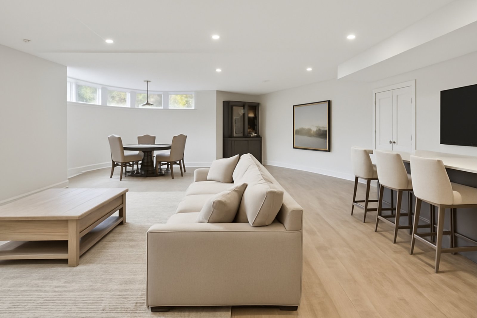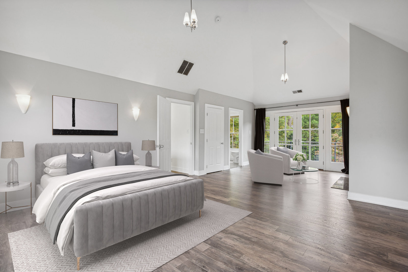 Upstairs, the primary suite is a private retreat with cathedral ceilings, a fireplace, a balcony overlooking the grounds, and a spa-inspired bath. The walkout lower level extends the living space with a refined entertaining lounge, billiards room, and a custom bar, designed for gatherings both intimate and grand.