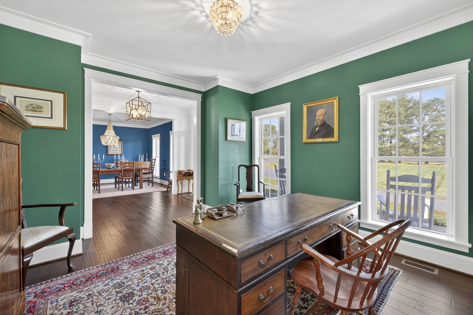 Set on 5.5 acres with sweeping mountain views, this beautifully crafted custom residence offers an exceptional blend of refined comfort and serenity. Built in 2020 and totaling approximately 4,000 square feet, the home is thoughtfully designed for both everyday living and entertaining, with light-filled interiors, elevated finishes, and a seamless connection to its natural surroundings. The main level welcomes you through an inviting foyer, flanked by a library/office on one side and a formal dining room on the other. Beyond, the home opens to the great room and gourmet kitchen, an impressive space anchored by an eight-burner Wolf range, Quartz countertops, a generous walk-in pantry, and a large island with ample seating. The great room, featuring a woodburning fireplace with a stone hearth, extends to a rear covered patio that perfectly frames the property’s peaceful mountain vistas. Two well-appointed bedroom suites, family room, laundry room, powder room, and interior access to the attached garage complete this level. Upstairs is dedicated to rest and retreat. The primary suite offers a tranquil haven with its own private deck. A fourth bedroom, hall bathroom, and a cozy reading nook ideal for quiet mornings or unwinding at day’s end, round out the upper level. Thoughtfully composed and ideally located on a quiet cul de sac minutes from Middleburg, this property is a rare opportunity to embrace modern living amid the timeless beauty of Virginia’s countryside.