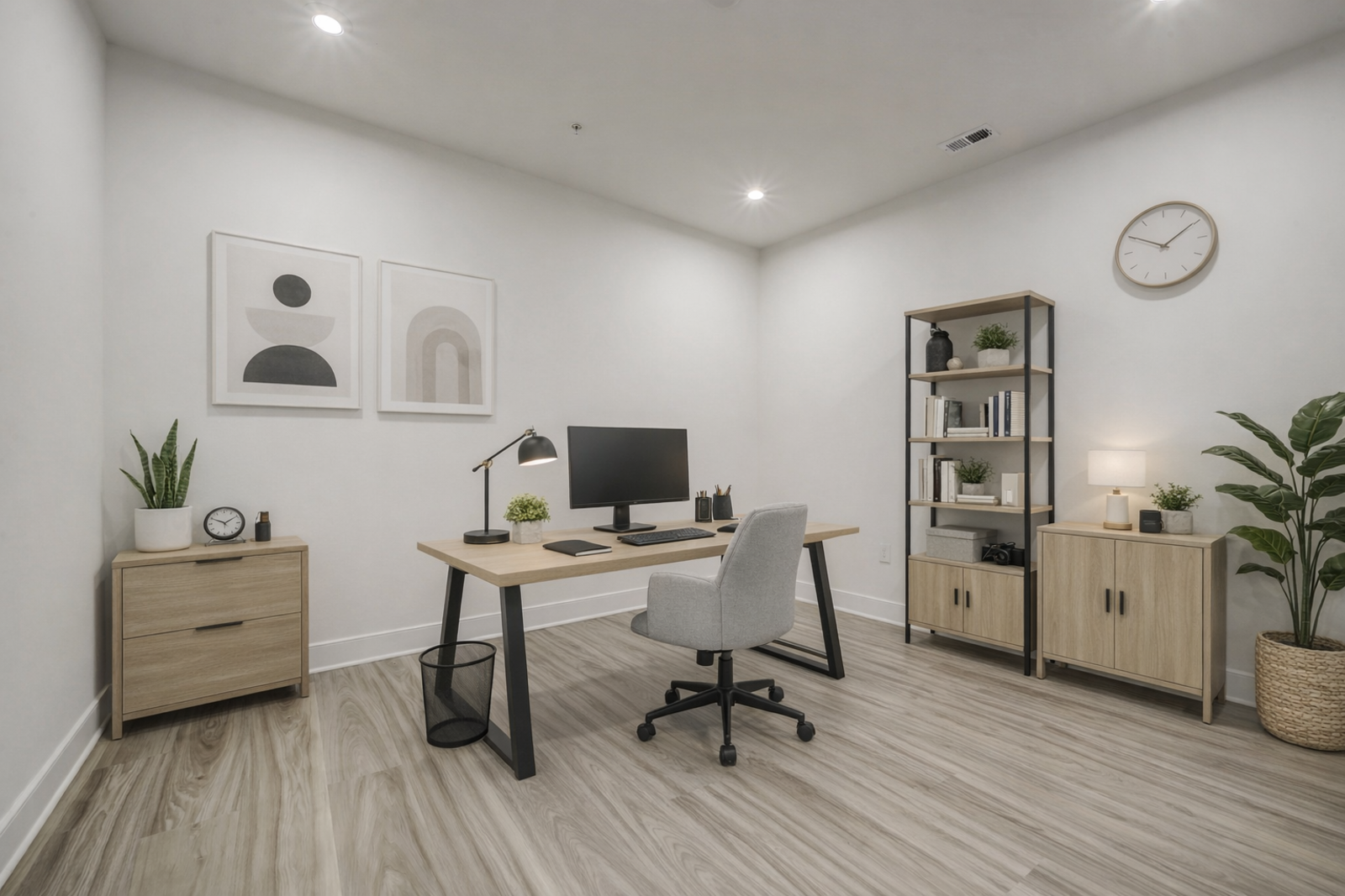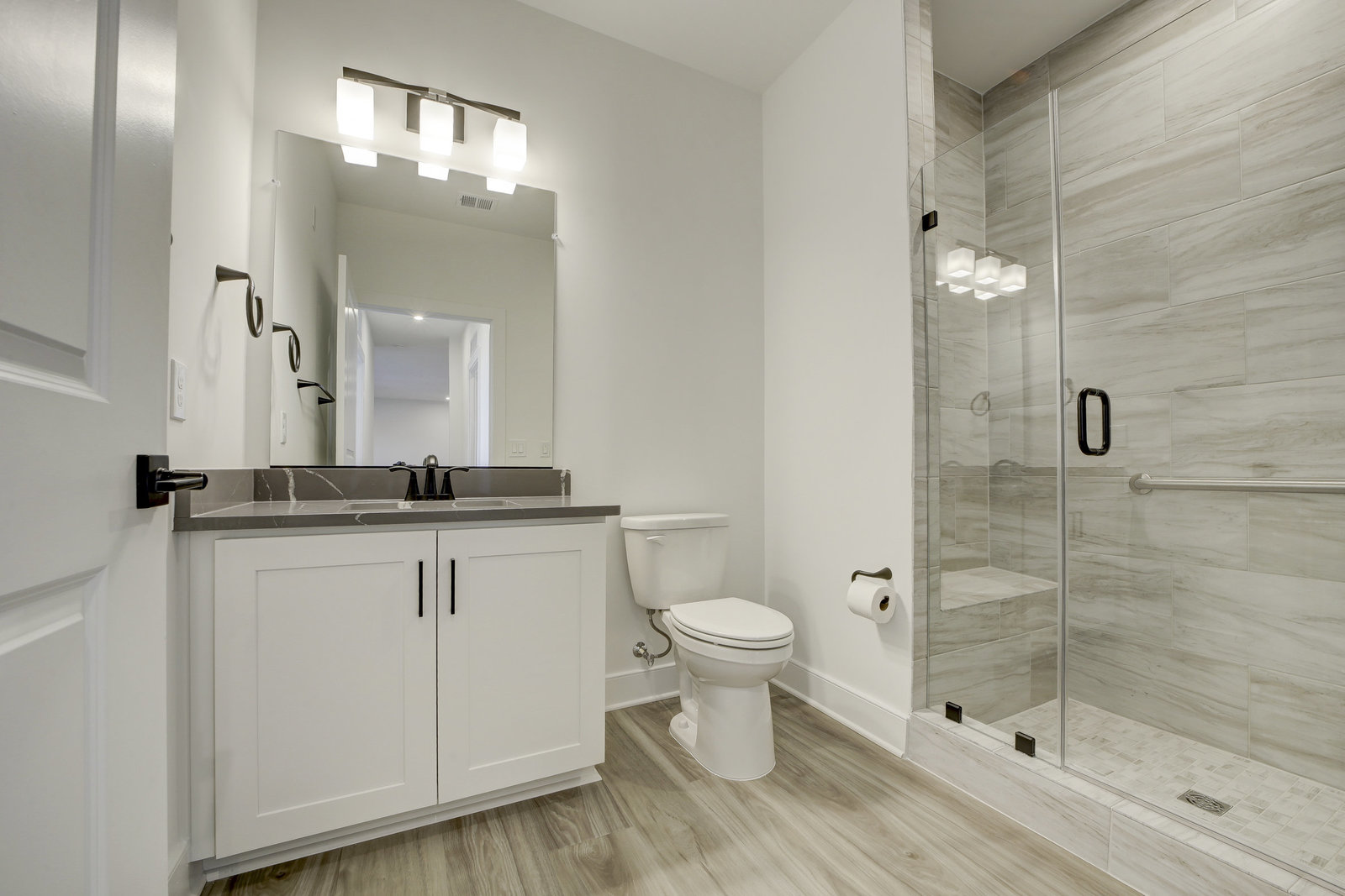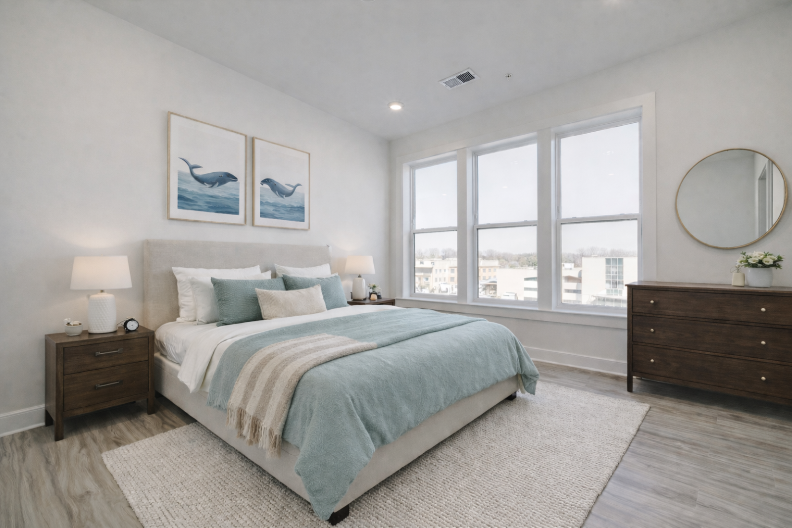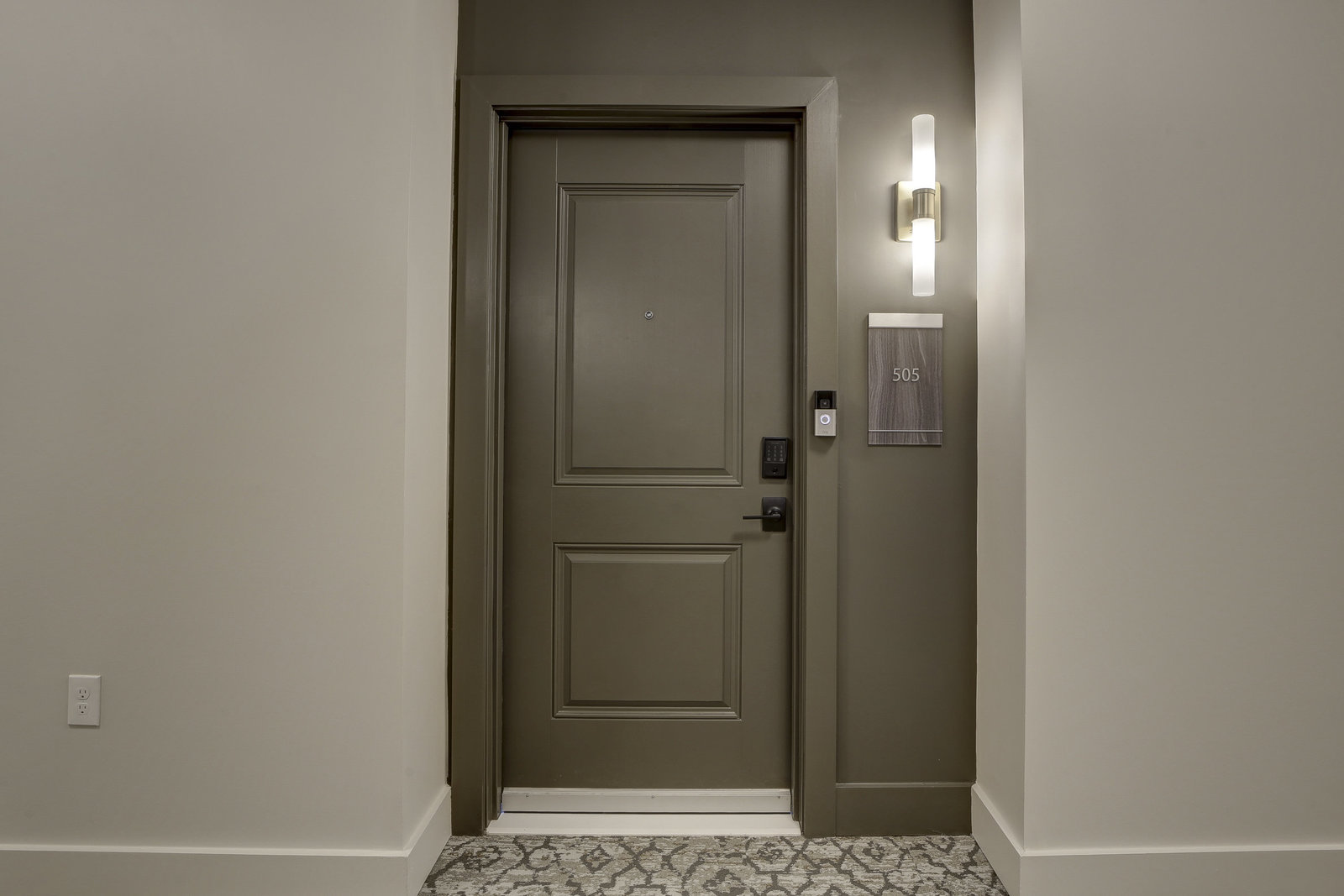 As you walk down the hall, you will be greeted by sleek, modern finishes throughout the building, leading to the front door complete with keypad entry and a Ring video doorbell. Step inside to discover gleaming wide-plank hardwood floors that extend throughout the condo. The thoughtfully designed open floor plan is both highly functional and ideal for everyday living as well as entertaining. The chef’s kitchen features a striking quartz waterfall island, stainless steel appliances, a gas cooktop, and ample cabinetry for storage. The kitchen seamlessly opens to the family room, where abundant natural light pours in through an oversized window, creating a bright and inviting atmosphere. Just beyond, balcony access enhances the living space, offering the perfect setting to lounge and relax.